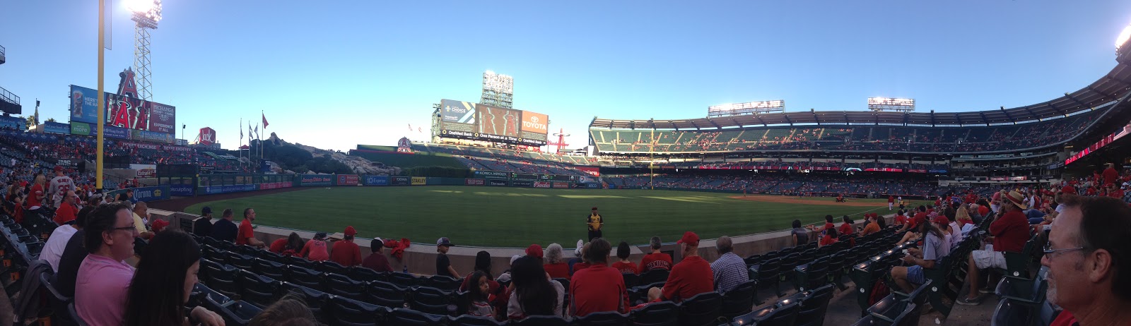 Blake and I love baseball and are on a mission to see a game in every professional park in the United States, more on that later. My mom got us tickets to see the Angels Friday night and we sat right on the third base line.