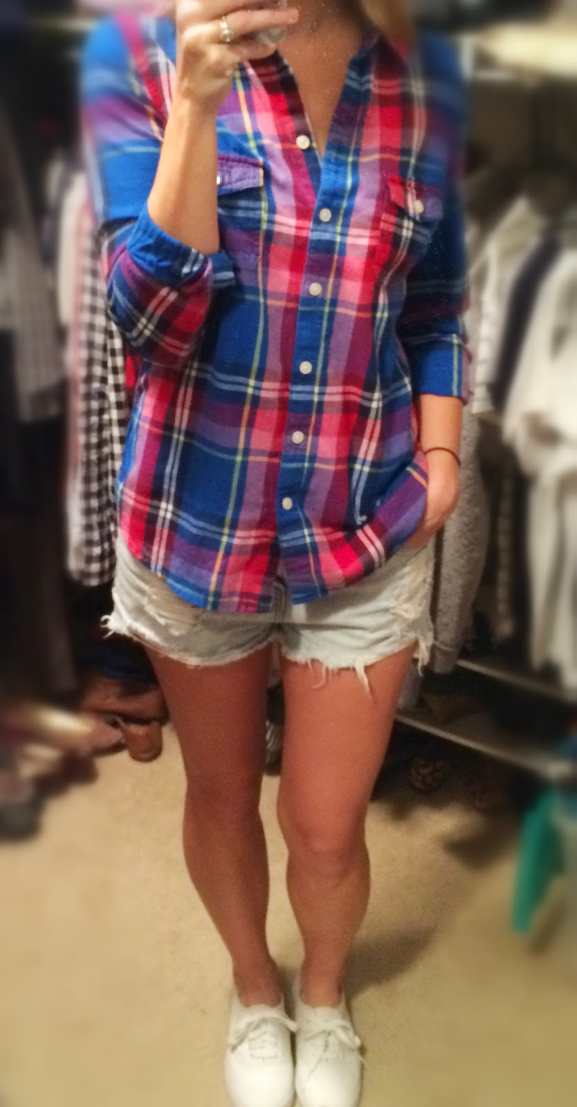 Old Navy flannel, F21 cut offs, Vans