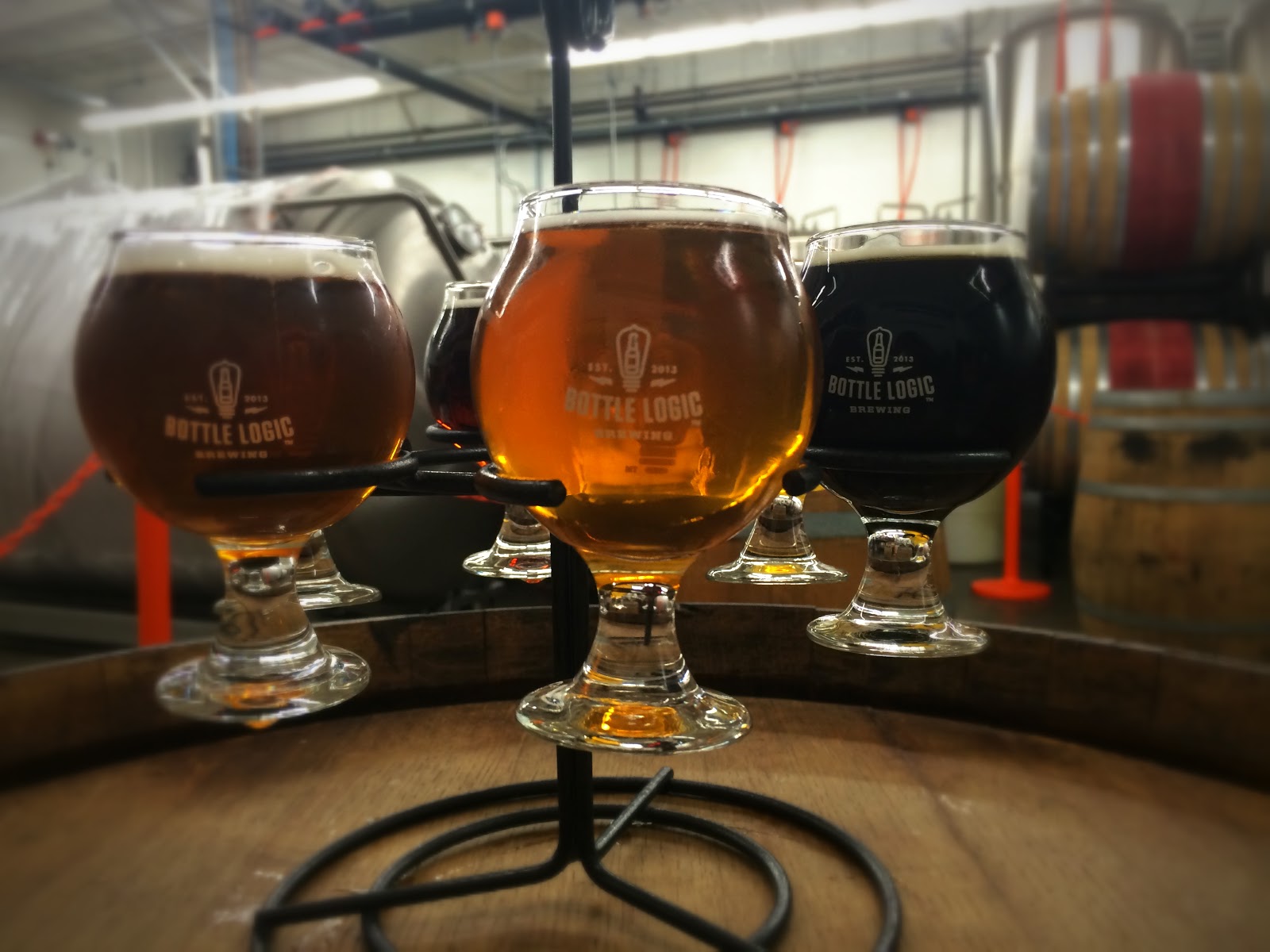 Bottle Logic is a small brewery in Anaheim California that opened less than a year ago. The tasting room is open to the brewery and there are plenty of places to sit around and have a drink at a table, the bar or on the patio out front. They people were friendly and helpful even though it was pretty busy for trivia night (every Monday at 7pm). We tried six of the beers they had on tap by creating our own flight. We like a little bit of everything when it comes to beer. Blake's favorites were Double Actuator (double IPA), Recursion 4.0 (oatmeal IPA) and Lagerithm (dark American lager). We will definitely be going back soon.