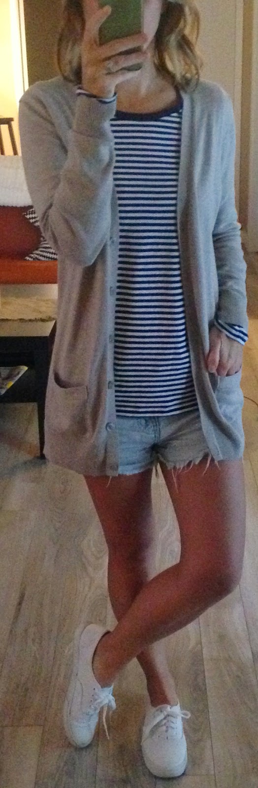 I usually take a photo of my outfit at some point each day and on Thursday I'll be posting a week plus or minus of what I came up with. I am a serious creature of habit, as you will soon learn. When I buy something new or find a piece that just fits, I tend to wear it on repeat for an obnoxious and slightly embarrassing amount of time before it gets replaced by another new item or wears out it's welcome and is relinquished to a hanger or drawer. So, don't be surprised when you see those oh so loved jean cut-offs for the millionth day in a row, or that one jacket I bought at Nordstrom in the BP section forever ago that I can't live without and wear over any and every tank, shirt or dress.
